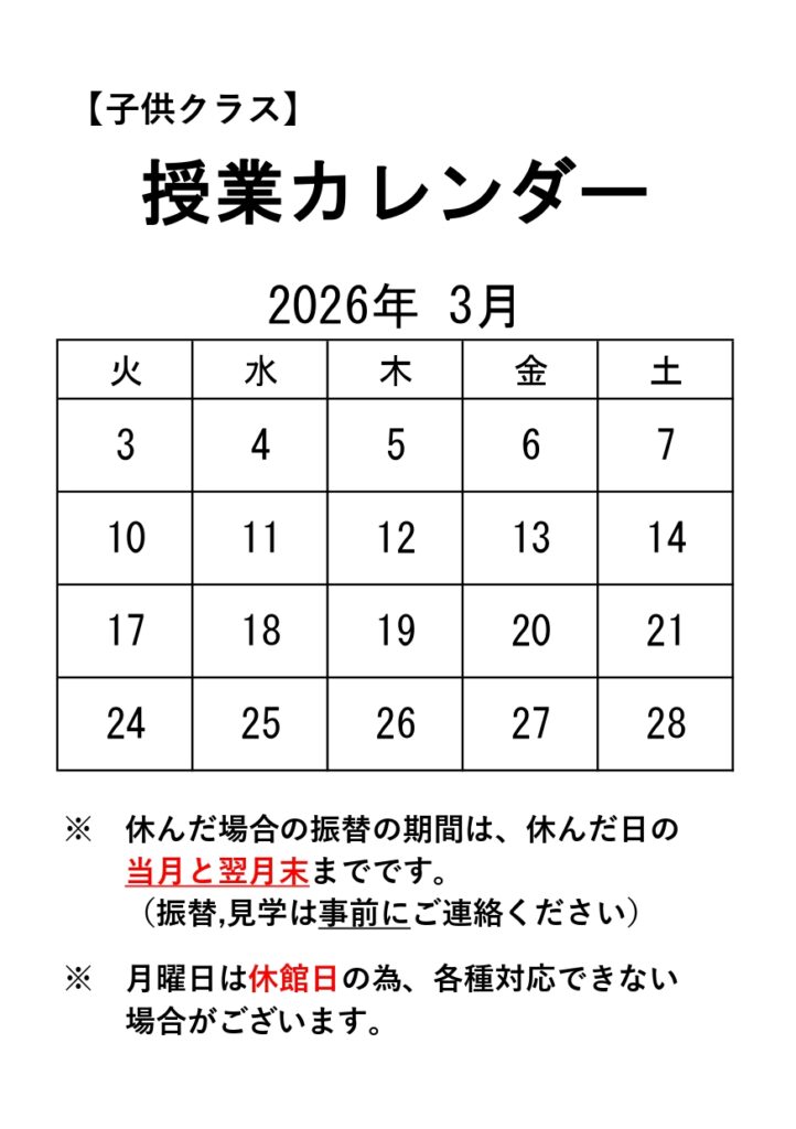 【子どもクラス】2026年3月授業カレンダー